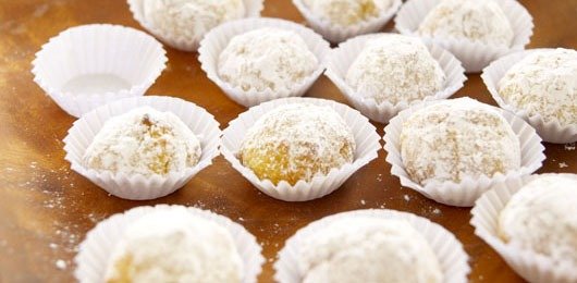 - Deixe arrefecer, role as bolinhas sobre açúcar em pó e coloque em caixinhas de papel frisado.