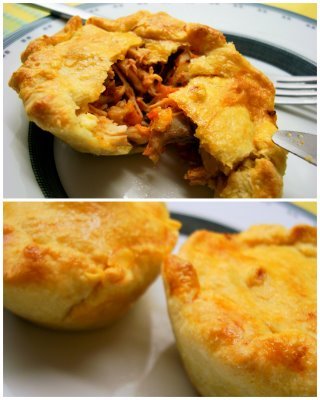 - Abra a massa e coloque-a em forminhas untadaa, recheie a gosto e cubra com metade da massa. Pincele com gema misturada com 1 colher de chá de óleo e leve a assar até dourar.