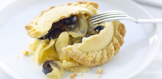 - e recheie com o preparado de maçãs e azeitonas. Estenda a massa
