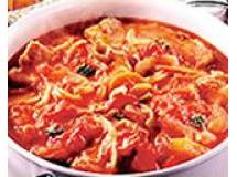 - Refogue a cebola picada e os dentes de alho picados no azeite. Misture o tomate sem pele nem sementes e deixe cozer. Adicione o vinho branco e tempere com o colorau, o sal e pimenta.