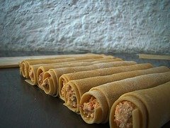 - Depois da abóbora cozida e bem escorrida, desfaça-a juntamente com o fermento, juntando em seguida o sal, os ovos e a farinha, amassando tudo muito bem.