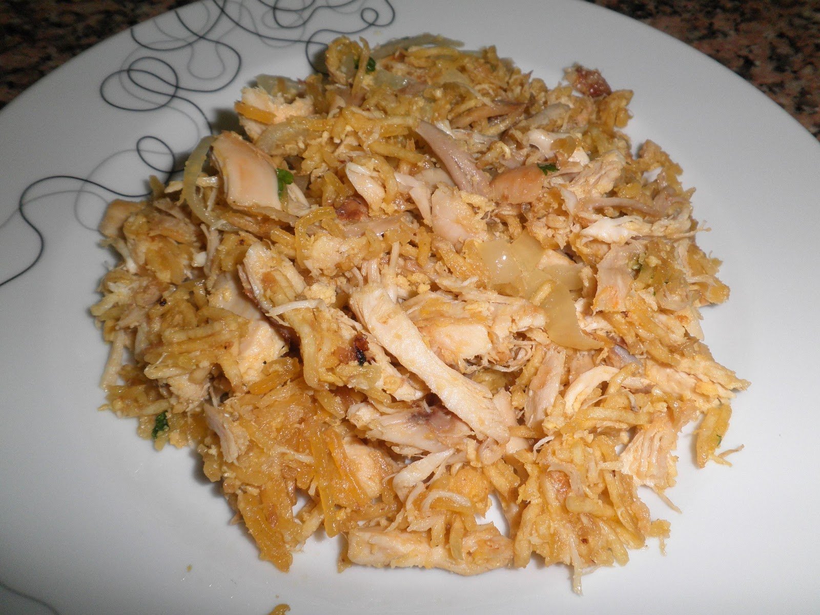 - Depois de cozido, limpe o frango, retire-lhe os ossos e desfie a carne.