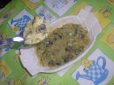 - Tempere o frango com vinagre e pimenta-do-reino a gosto. Arrume os pedaços de frango em um refratário retangular e besunte-os com maionese. Espalhe por cima da maionese a sopa de cebola, o molho de tomate e o leite de coco. Leve então ao microondas de 20 a 25 minutos, potência média. Pode-se substituir o frango por peixe ou camarão.