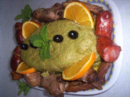 - Num tacho ao lume misture a gelatina em pó com um pouco de agua, o suficiente para dissolver. em seguida adicione o leite evaporado e misture bem e reserve. (Se quiser pode adicionar um pouquinho do xarope ou licor para dar gosto). 2. Ponha o preparado no molde pincelada com um pouco de óleo, e coloque no frigorífico de um dia para o outro. 3. Depois desenforme. (para facilitar ponha por uns segundos o molde em agua morna). Decore ao seu gosto e sirva. Sugestões: Se quiser que fique mais assustador coloque um saco pequeno com qualquer liquido ou xarope vermelho comestível. De um no bem apertado e ponha saco no meio da gelatina antes de colocar no frigorífico. Assim quando for a cortar vai sair o liquido e dar um enfeito de sangue a escorrer... Bom Apetite!
