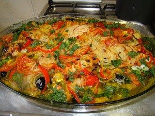- Num recipiente grande, despejar esta mistura, juntar as gelatinas coloridas e levar ao frigorífico cerca de 4 horas ou até endurecer.