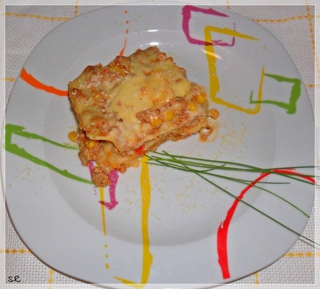 - Espalhe um pouco de carne e salpique com um pouco de maionese. Coloque novamente as placas de lasanha e repita o processo até acabarem os ingredientes. A última camada deve ser de carne.