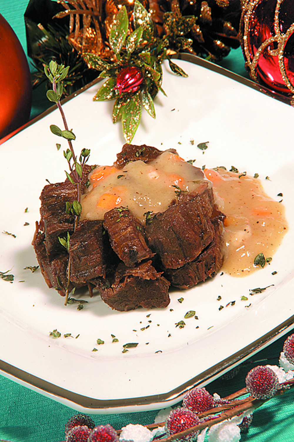 - Num prato, coloque o lombo de novilho cortado em fatias grossas.