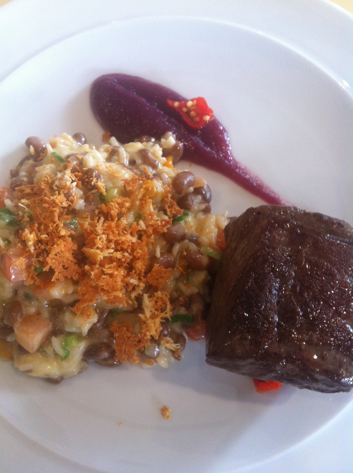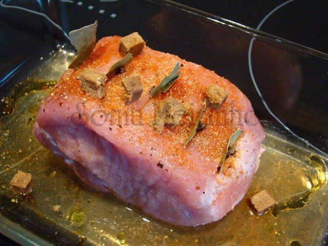 - Lave bem o lombo e tempere com limão, vinagre, alho socado com sal, pimenta-do-reino, louro e cebola. Deixe descansar por duas horas. Enquanto isso, descasque duas maçãs, descaroce dez ameixas pretas, pique bem e misture para rechear o lombo. Passando o tempo determinado, retire o lombo do tempero, abra-o no sentido do comprimento e recheie com a mistura das frutas. Una as extremidades com palito e passe barbante em volta do lombo para segurar o recheio. Coloque o lombo em uma assadeira com óleo e leve ao forno pre-aquecido para assar, regando-o de vez em quando com o próprio molho. Depois de corado, retire-o da assadeira e deixe esfriar. Corte-o em fatias e arrume em uma travessa com ameixa preta, fatias de maçã e abacaxi cortado em fatias, fritos na manteiga. Decore com cereja e pêssegos. Acompanhe o prato com o molho servido a parte, batido no liqüidificador com as compotas e o presunto.