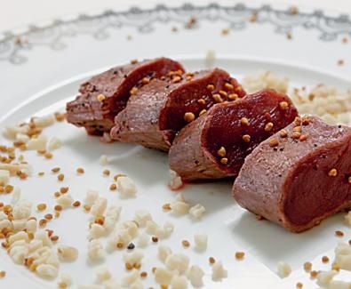 - No dia, retira-se da marinada e envolve-se o lombo em fatias de toucinho amarrando-as com o fio de cozinha.