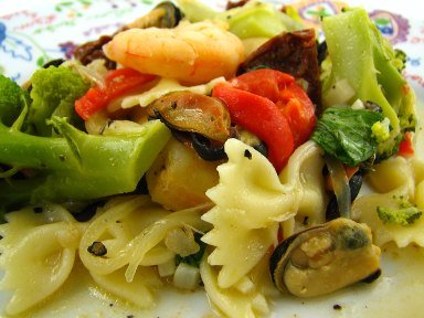 - Numa panela com água e sal coza a massa de laçinhos. Quando estiver prestes a ficar al-dente povilhe generosamente a água com alho em pó. Deixe ficar al-dente, retire do lume, escorra e, reserve.