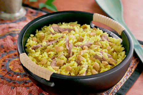 - º - triture o amendoim cru rapidamente no liqüidificador com 3 colheres de sopa de açúcar e um pouco de canela em pó.