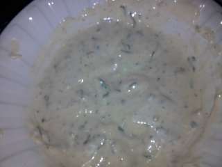 - basta temperar a maionese com o alho picadinho, sal, pimenta, salsa picada e ir juntando colherzinhas de água até o molho ter a consistência desejada.