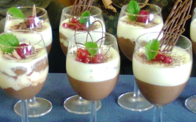 - Rale as bolachas. Num recipiente leve a amolecer em banho-maria metade da manteiga e o chocolate partido em pedacinhos e quando estiverem em creme, junte 5 gemas e 5 colheres de açúcar e bata até obter um creme fofo. Misture depois, sem bater, 5 claras em castelo bem firme. Intercale com uma terça parte das bolachas raladas. Ao mesmo tempo, prepare uma mousse igual com a restante manteiga, ovos e açúcar e mais um terço das bolachas raladas. Numa taça, deite as duas mousses às camadas alternadas com muito cuidado, e por fim polvilhe com a restante bolacha ralada. Guarde no frigorífico pelo menos por 4 horas.