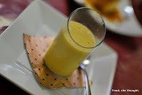 - Coloque numa taça a polpa de manga, junte os iogurtes e o leite condensado.