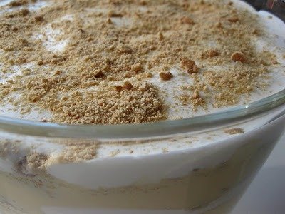 - (eu preparei a outra saqueta, de acordo com as instruções da embalagem e deitei por cima do preparado anterior)