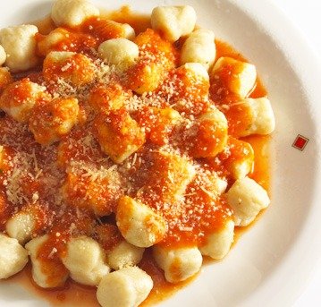 - Cozinhe, escorra as batatas e esmague-as ainda quentes. Acrescente o ovo e a farinha de trigo. Enrole com bastante farinha, em rolos de mais ou menos 1,5 cm de espessura. Corte em pedacinhos e ferva em bastante água até que venham à tona. Sirva com molho de sua preferência e queijo ralado.