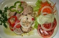 Ingredientes (Para 8 personas) Para a Vinagrete: * 60 g de azeite * 20 g de vinagre * 100 g de pimento verde * 100 g de pimento vermelha * 100 g de cebola * 1 ovo * Folhas salsa e sal Para o creme: * 50 g de óleo (1/2 medidas) * 800 g […] Ver Receita