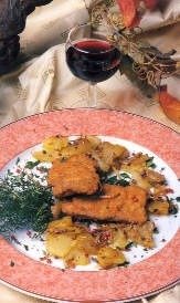 - Sobre o prato de servir coloque os grelos e as batatas salteadas e bem tostadas e por fim os panados de vitela guarnecidos com limão.