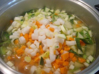 - Faça um refogado com o azeite e a cebola muito bem picada. Junte ao refogado o bacalhau demolhado e esfiado, sem pele nem espinhas, e a salsa picada. Tempere com pimenta. Deixe o refogado apurar e tire do lume.