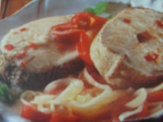 - Num tacho, deitam-se o óleo-de-palma, os dentes de alho picados, a cebola cortada às rodelas finas, o tomate sem peles nem sementes, o peixe depois de arranjado e cortado às postas, sal, piripiri e o vinagre. Por cima, põem-se as folhas de espinafres e adiciona-se um pouco de água.