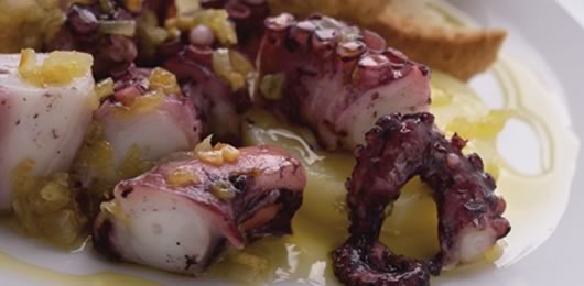 - Sirva o polvo com tostas de pão e batatas cozidas.