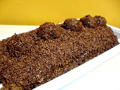 - Desenforme, regue com caramelo liquido e decore com corintos e miolo de amêndoa.