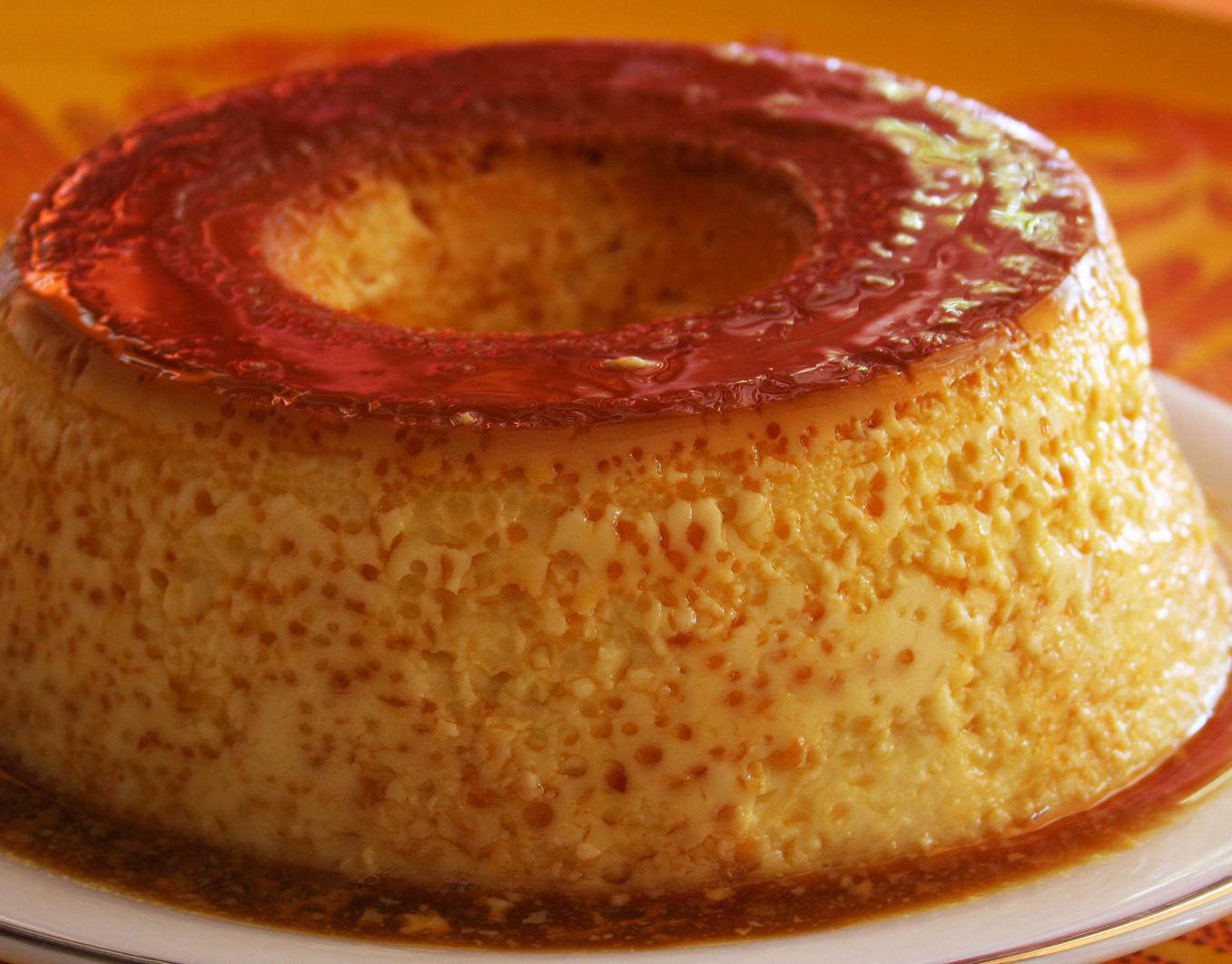 - Entretanto, bata muito bem os ovos e junte-lhes o açucar. Deite este preparado na forma que terá de forrar com o açucar em caramelo. Leva-se depois ao forno a cozer em banho-maria durante cerca de 1 hora, verificando de vez em quando.