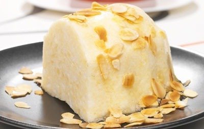 - Desenforme o pudim e decore-o com o doce de maçã que reservou e lascas de amêndoa torrada.