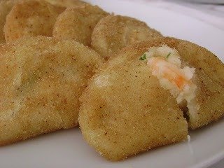 - recheio de camarão (camarões, carangueijo, farinha, vinagre, pickles - tudo picado)