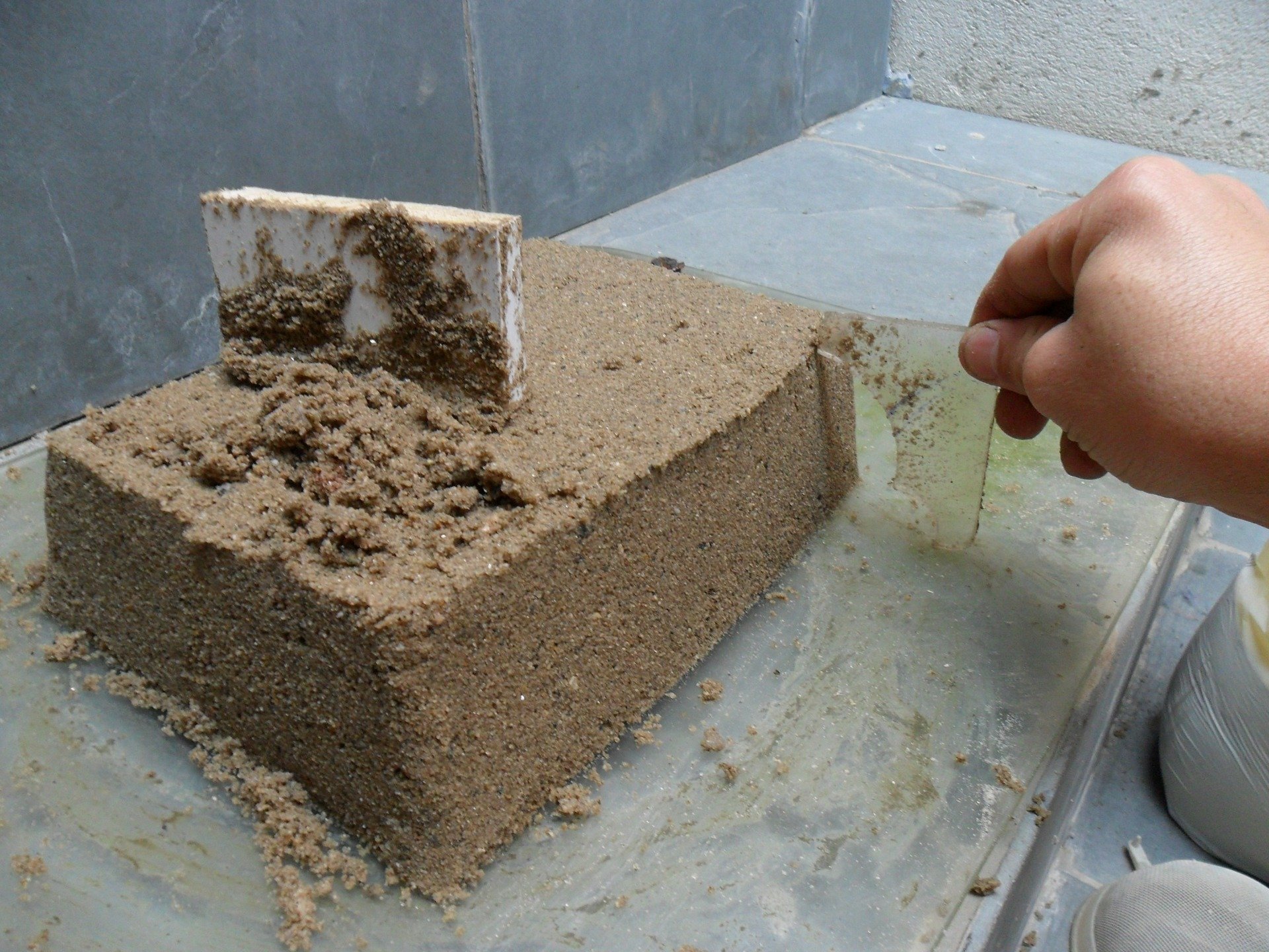 - Depois de estar morno, corte com uma faca de serra, pequenos rectângulos.