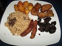 - À medida que estes ingredientes se vão fritando, juntam-se aos rojões, para manter tudo quente. Juntam-se também as castanhas assadas, depois de descascadas.