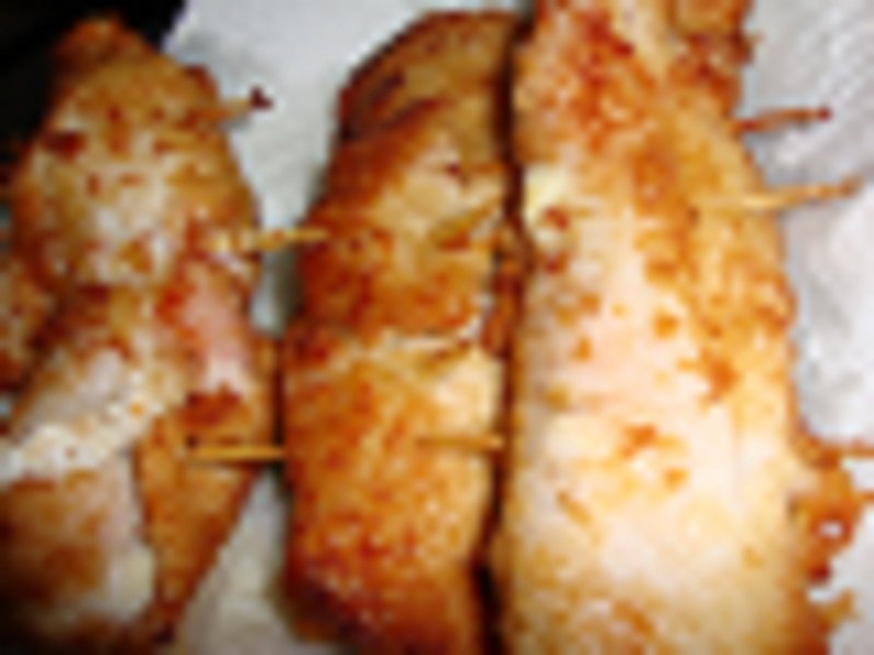 - Parta o ovo num prato e bata, coloque o pão ralado em outro prato e passe os rolinhos por ovo e pão ralado, entretanto deixe o óleo a aquecer numa frigideira e assim que estiver quente pane os rolinhos, virando-os, deixe os escorrer em papel absorvente.