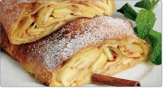 - x 30 cm. Cubra com o puré de maçãs, deixando cerca de 2 cm livres no bordo e enrole cuidadosamente.