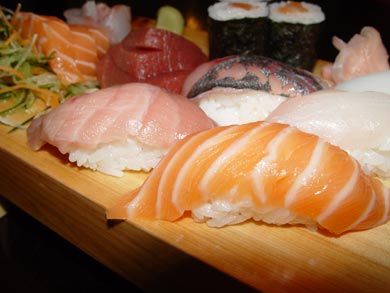- Cortei o lombo de salmão em quatro e coloquei em cima da alface, e o prato era para ser só assim. Mas resolvi terminar com uma saborosas fatias de presunto.