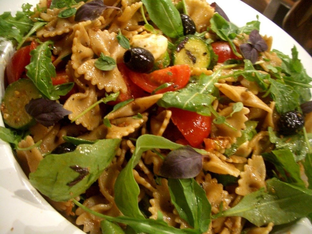 - Lave a alface e escorra bem.Forre com ela uma saladeira grande. Corte o palmito em fatias e arrume sobre as folhas de alface.Misture o milho e as ervilhas escorridas, junte as passas e reserve.Coloque a cebola ralada em uma tigela pequena, junte um pouco de azeite, bata bem, acrescente o sal e a pimenta a gosto e o suco de limão.Continue a bater até o molho ficar espesso e esbranquiçado. Tempere com ele a batata e a cenoura e também a mistura de milho e ervilhas e por último as fatias de rabanete. Enfeite com azeitonas.Borrife a salada com o molho restante.