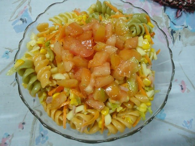 - Misture bem os ingredientes do molho e reserve. Coloque em uma saladeira os ingredientes secos e misture a eles o molho.