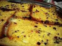 - - Arrume 4 fatias de pão lado a lado, num prato rectangular.