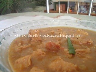 - Aqueça em lume médio o puré de abóbora, o leite de coco e a água numa panela e deixe cozinhar por 10 minutos. Junte a galinha, os espinafres o sumo de lima, a pasta de caril e o sal a gosto e deixe cozinhar por 5 minutos ou até a galinha cozer. Sirva.