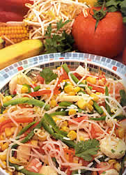 - Logo antes de servir acrescente o salmão à sopa. Decore cada prato com fatias de pepino, cebolinha e pimentões. Espalhe um pouco de ovas em cima de cada pedaço de Salmão.