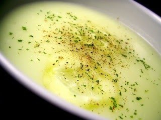 - Misture a cebola com o caldo de peixe e pepino. Coloque a mistura em uma panela e cozinhe em fogo brando até que os pepinos estejam tenros e não moles - cerca de 5 minutos. Transfira para o liquidificador, acrescente o dill e o iogurte e misture até que fique homogêneo . Tempere com sal e pimenta. Refrigere .