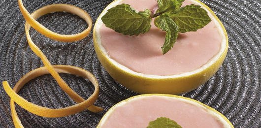 - Corte as toranjas ao meio, esprema e coe o sumo. Misture com o leite condensado e leve ao lume, mexendo, até começar a ferver. Retire do calor e junte a gelatina escorrida. Adicione o xarope de groselha e deite nas cascas das meias toranjas cujo interior entretanto raspou com uma colher de sobremesa ou de chá.