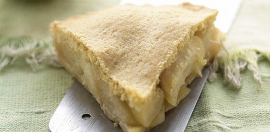 - Quando as maçãs estiverem quase prontas, retire a massa do congelador e divida-a em duas porções. Estenda a massa com o rolo em duas placas circulares. Forre uma forma de tarte com uma delas, por cima disponha as maçãs e tape com a restante massa, fazendo aderir bem os bordos.