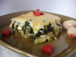 - Disponha em camadas o creme, o frango e o queijo mozzarela fatiado, repetindo as camadas até terminar com queijo.