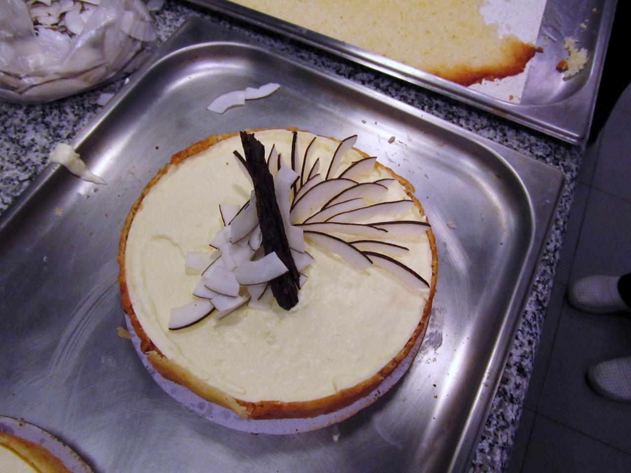 - - o restante do quindim leve ao fogo com uma colher de sopa de maisena para cozinhar. corte a torta ao meio, recheie com o quindim e cubra a torta com chantilly e decore o quindim assado e desenhando um girassol.