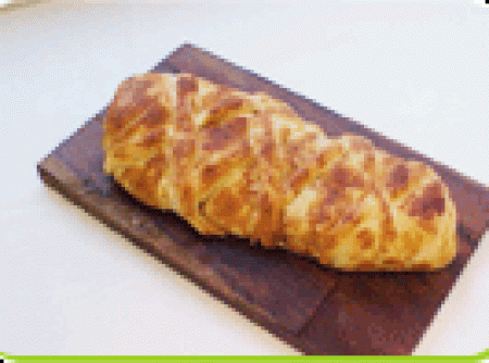- Abra um rectângulo de aproximadamente 10X15 cm na massa, passe clara do ovo nas bordas para fechar. Acrescente um pouco do recheio no sentido do comprimento da massa e feche. Aperte bem as pontas com os dedos e depois com um garfo para selar bem.