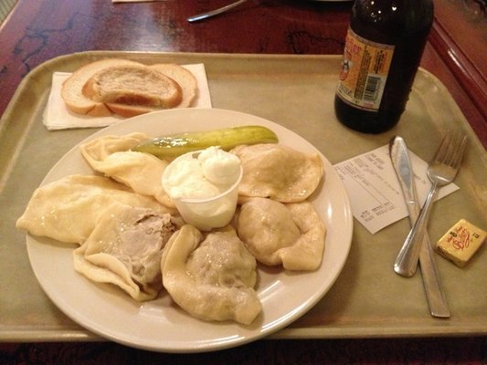 - Misture os ingredientes da massa até que eles formem uma bola. Estique a massa e recorte pyrohys pequenos, ponha um colherada de recheio no centro, dobre em cima de forma que as extremidades se encontrem, e aperte as extremidades. Coloque o pyrohy para ferver em água salgada e cozinhe até que eles flutuem ao topo. Tire o pyrohy e drene o. Verta um pouco de óleo, para que eles não grudem uns aos outros.